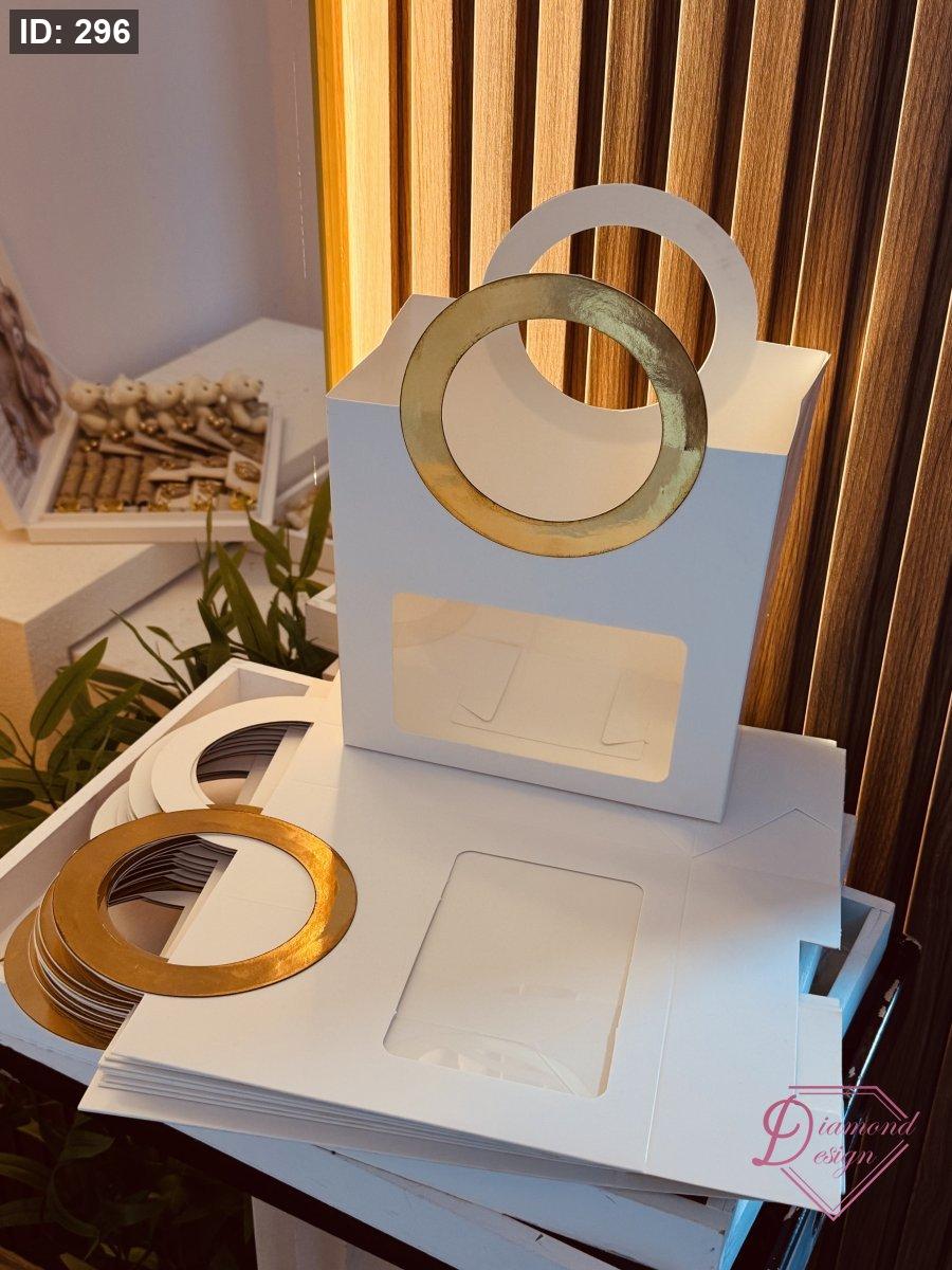 كيس كرتون مع فتحة شفاف ويد دائري ذهبي